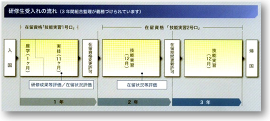度です。入国した実習生は、実習実施機関(受け入れ企業様)と雇用関係を結び、実践手